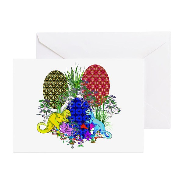 CafePress Dinosaur Easter Eggs Folded Greeting Cards (10-pack) Matte