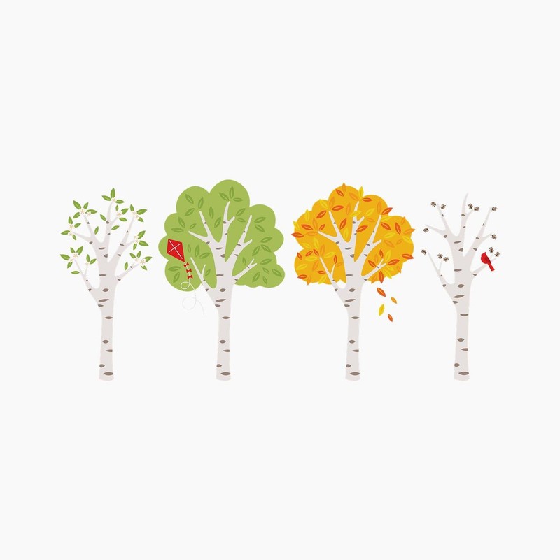 CafePress Four Seasons Spring Summer Fall Winter Birch Trees Greeting Card (20-pack), Note Card with Blank Inside, Birthday Card Matte
