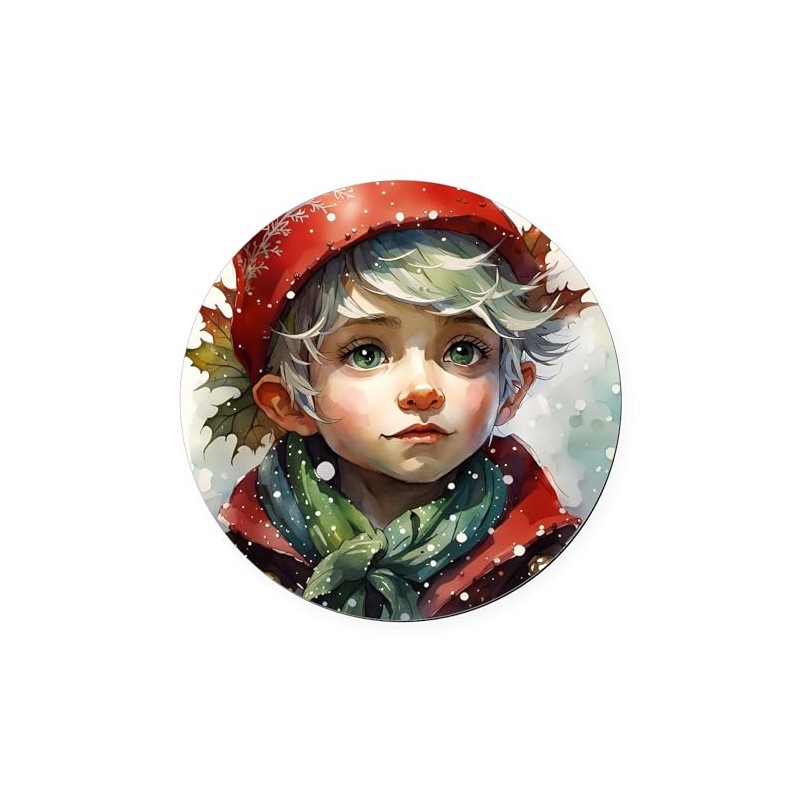 CafePress Green Eyed Christmas Elf 5.5" Round Car Magnet Magnetic Bumper Display