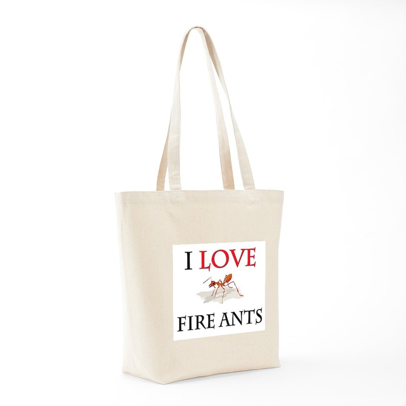 CafePress I Love Fire Ants Tote Bag Reusable Natural Beige Canvas Shopping Bag