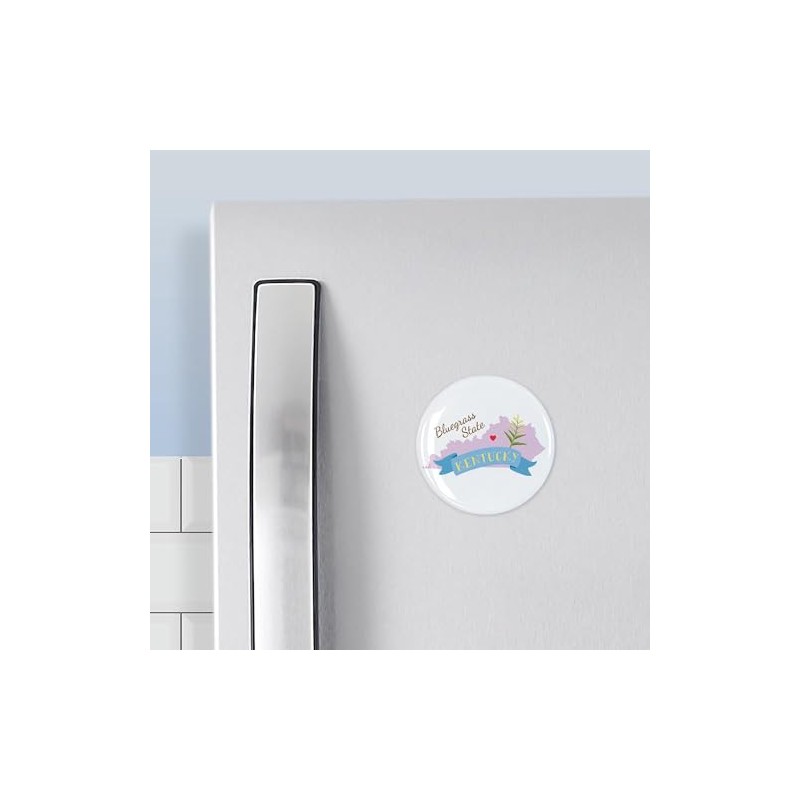 - Round refrigerator magnets printed on metal shell with flat, magnetic backing