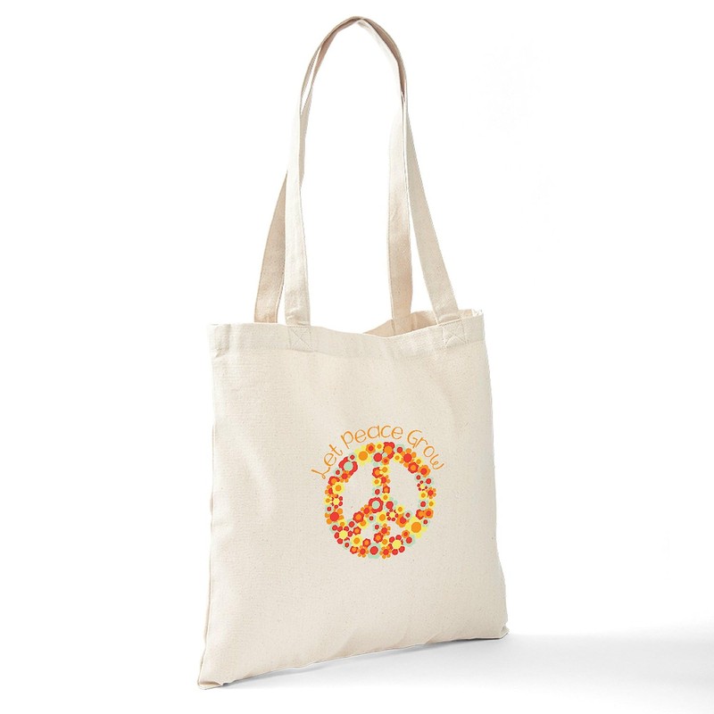 CafePress Let Peace Grow Tote Bag Reusable Natural Beige Canvas Shopping Bag