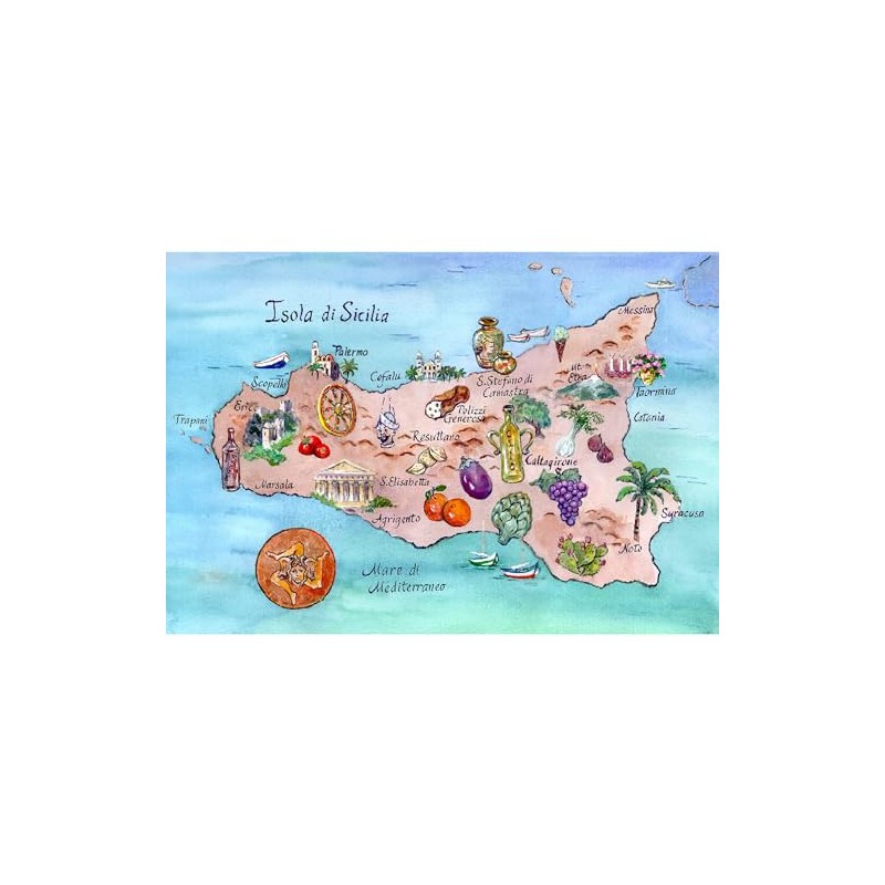 CafePress Map Of Sicily Rectangle Magnet, 3"x2" Refrigerator Magnet