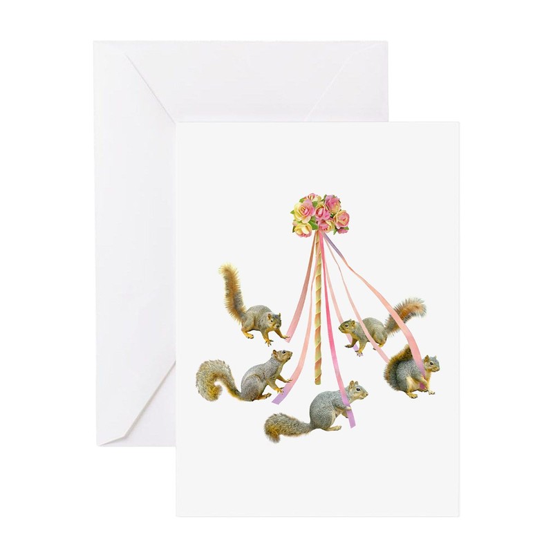 CafePress May Day Squirrels Folded Greeting Card Matte