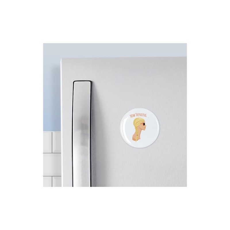 • Round refrigerator magnets printed on metal shell with flat, magnetic backing