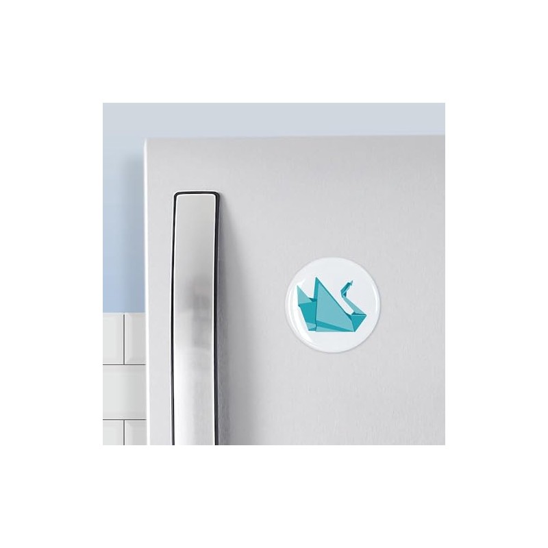 - Round refrigerator magnets printed on the metal shell with a flat, magnetic backing