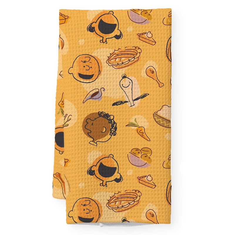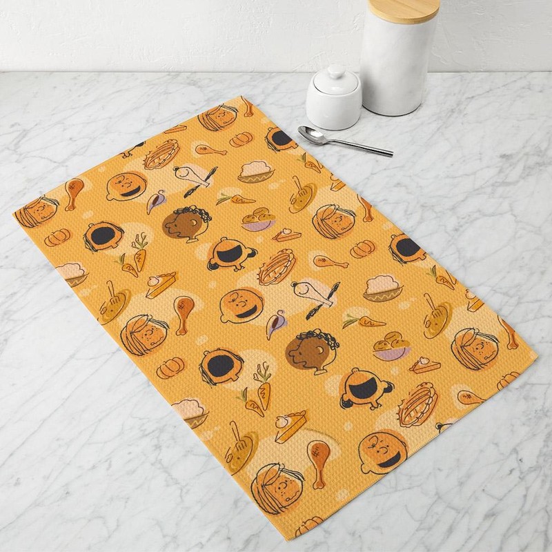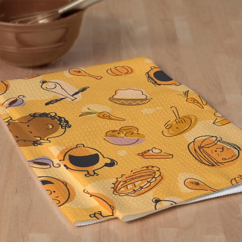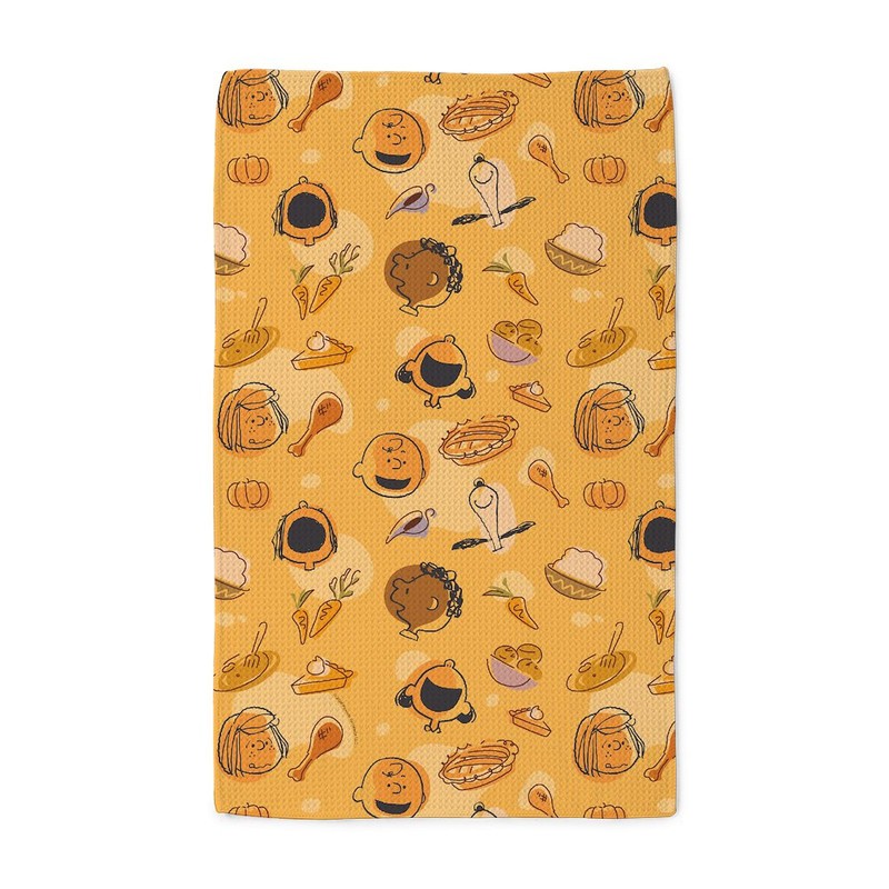CafePress Peanuts Thanksgiving Gathering Pattern Tea Towel