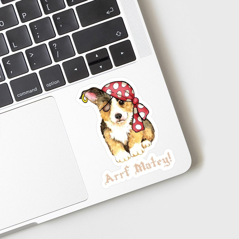 CafePress Pirate Corgi K Small Die Cut Sticker, 3"x4" Matte Finish