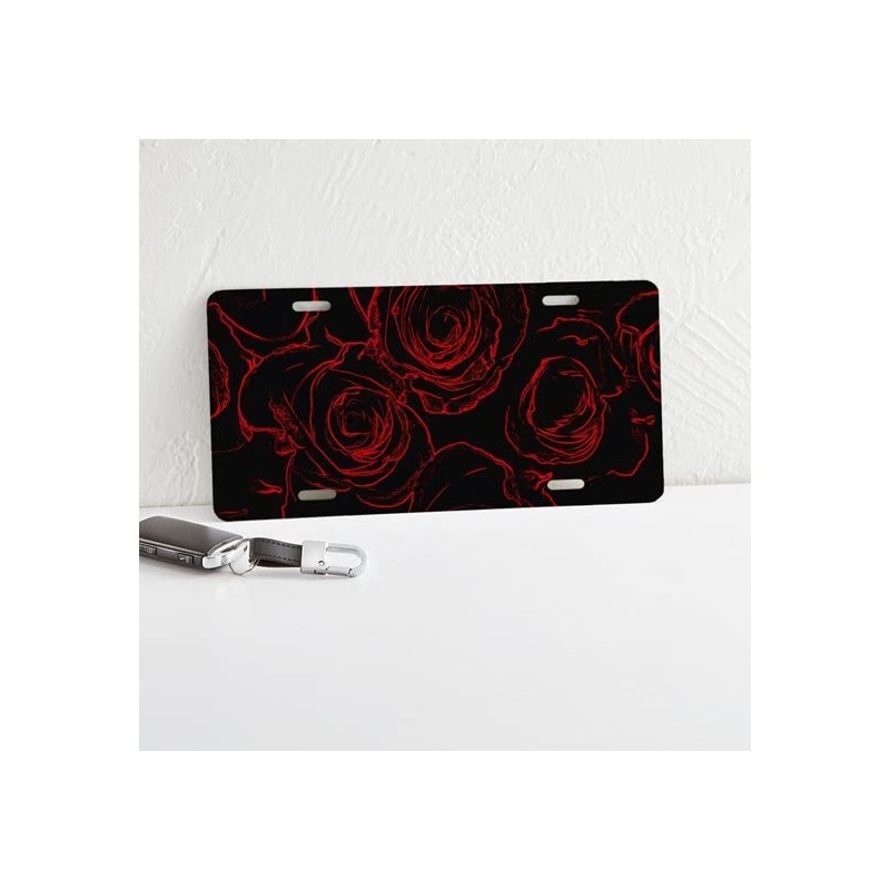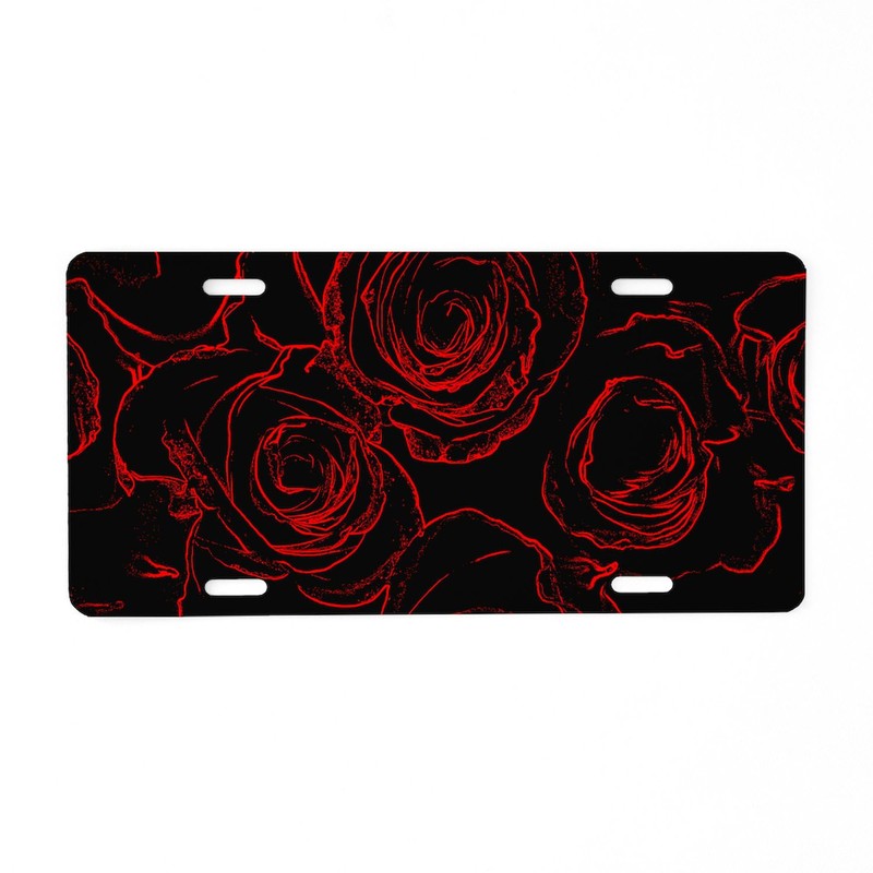 CafePress Red Roses Black Background Aluminum License Plate, Front License Plate, Vanity Tag