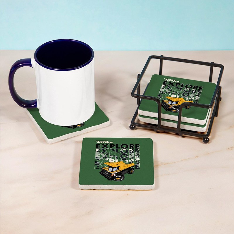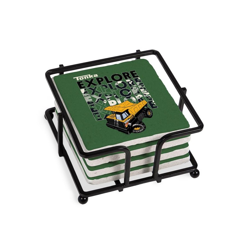 CafePress Tonka Dump Truck Explore Tumbled Stone - Set of 4 Coasters Set of 4 w/holder