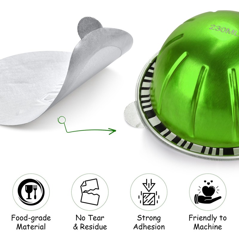- Cápsulas de café compatibles: nuestros sellos de aluminio están especialmente diseñados para cápsulas de café Vertuo que se adaptan a Nespresso VertuoLine (62 mm de diámetro), no es compatible con la máquina Nespresso Original Line.