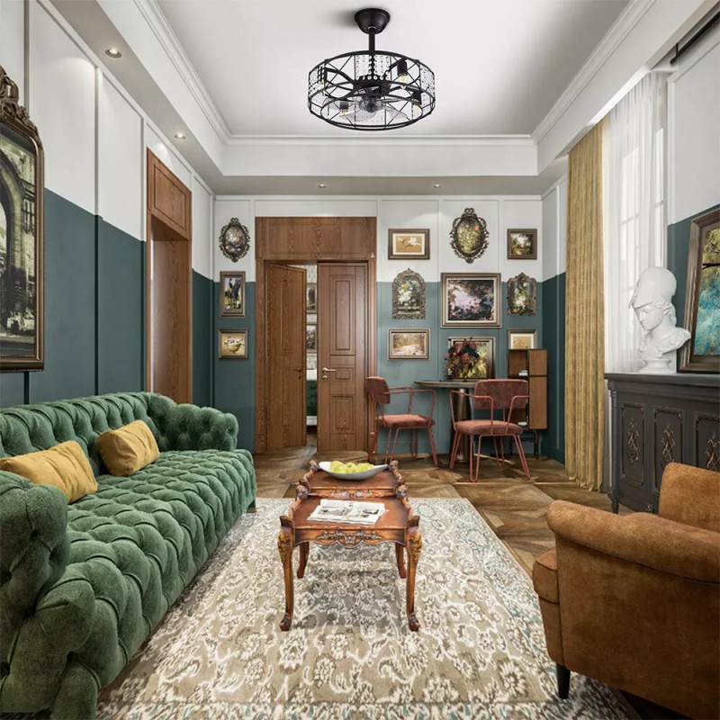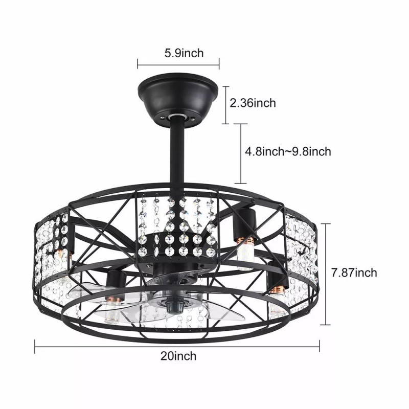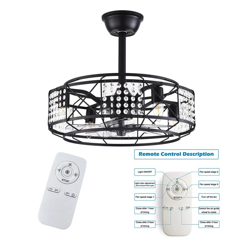 Caged Ceiling Fan w/ Light Farmhouse Remote 3 Speeds Enclosed Ceiling Fan Lamp