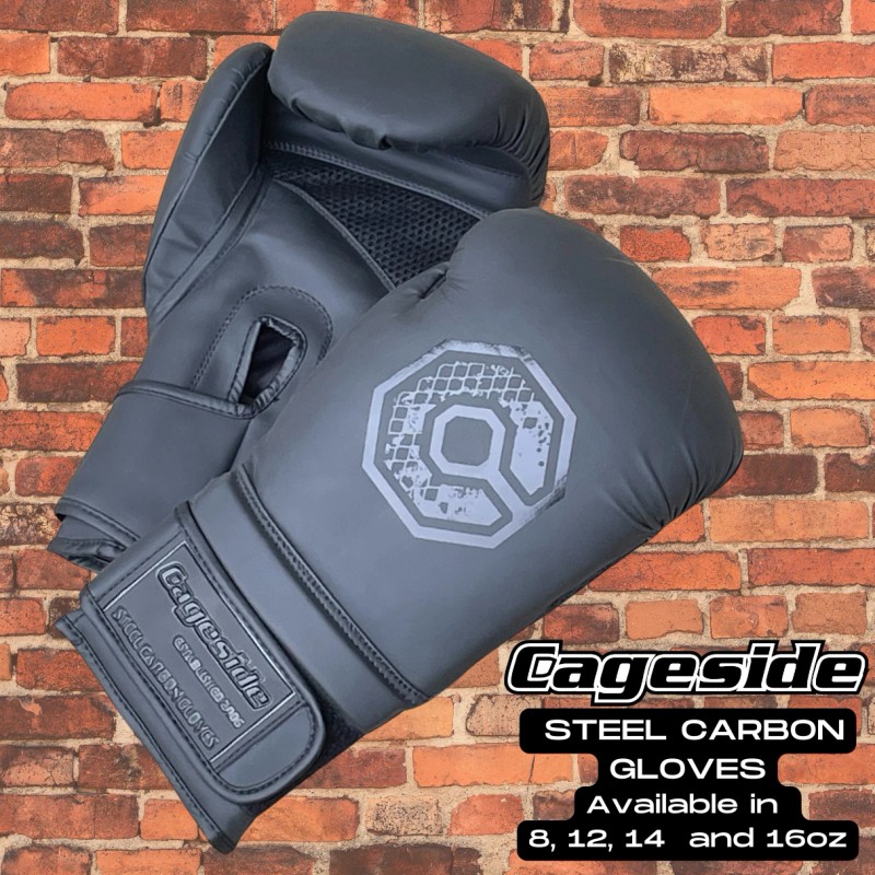 Cageside Steel Carbon Boxing gloves Black on black 8oz 12oz 14oz 16oz - 14oz