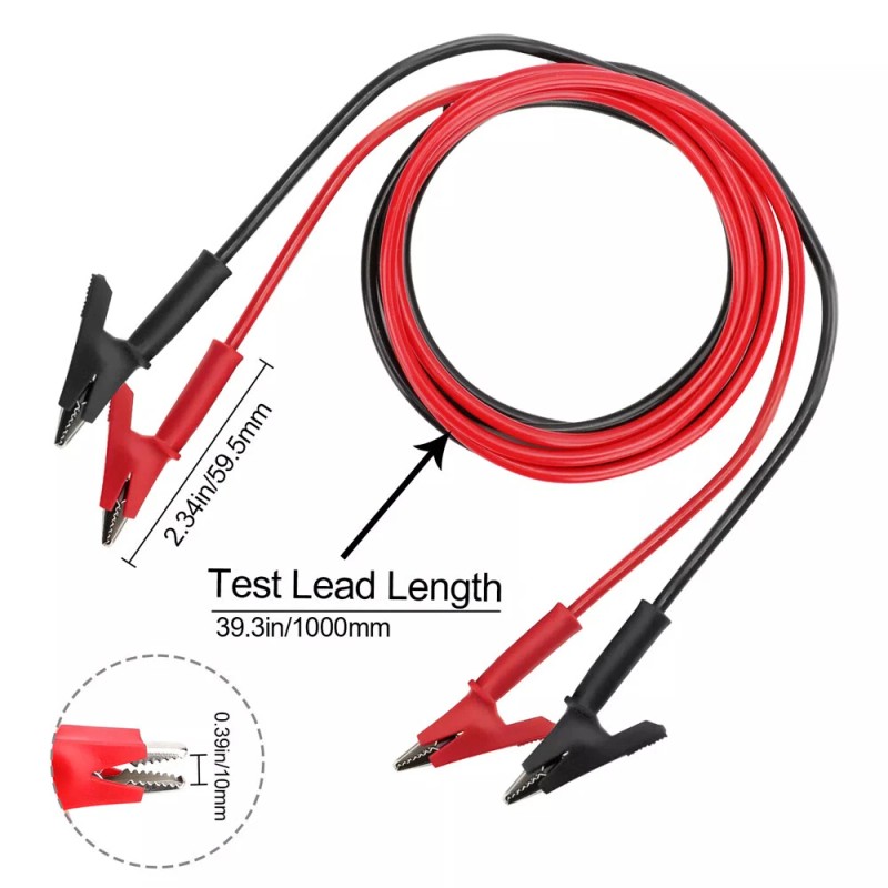 • Alligator clips open up to 10mm wide, with a voltage capacity of 1500V and a current of 15A. The 39.3" length provides ample flexibility.