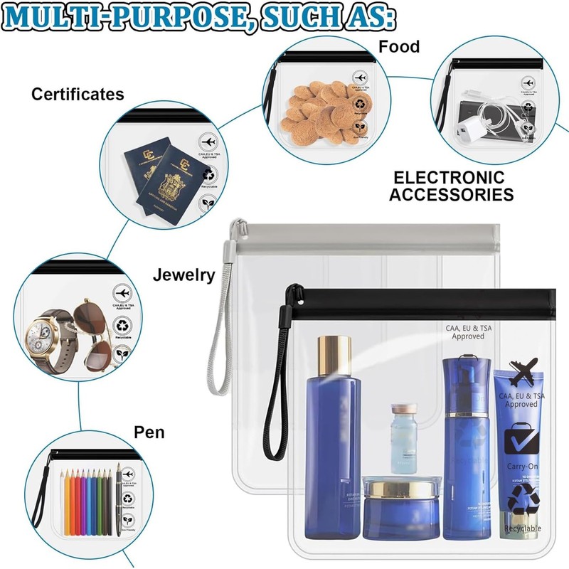 2, Our clear travel bags fully comply with the airport 3-1-1 rule, (containers holding liquid items should be placed in a transparent resealable plastic bag with a maximum volume of no more than 1 litre (L)).