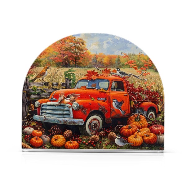 Caikeny Napkin Holder for Tables Pumkin Bird Trucks Maple Forest Acrylic Napkins Holder Freestanding Tissue Dispenser Box for Kitchen Dining Table Coffee Desk Decor 1 Pcs