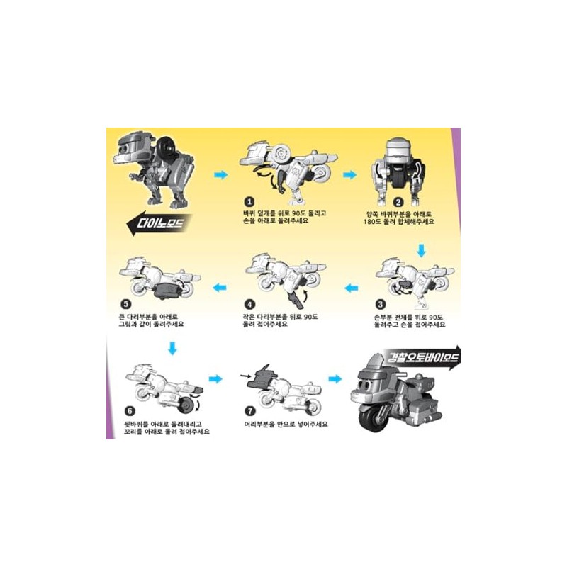 • Easy & Fun Transformation Process: Simple steps to transform: rotate the wheel covers, adjust the hands, fold the legs, tuck the tail, and position the head inside to complete Police Motorcycle Mode.
