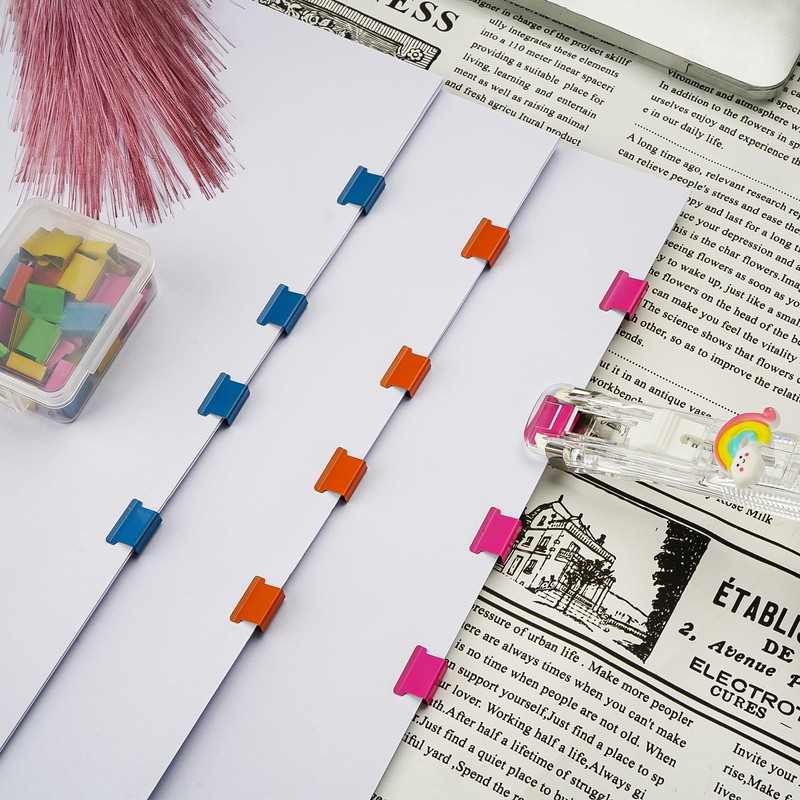 - Plastic paper clam clips with small colored binder clips are ideal for organizing papers, test papers, student notes, paperwork, and office documents, securely holding individual sheets of paper or binding together multiple-page documents.