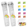 - The push stapler is made from plastic with cute rainbow decor and colored metal paperclips.