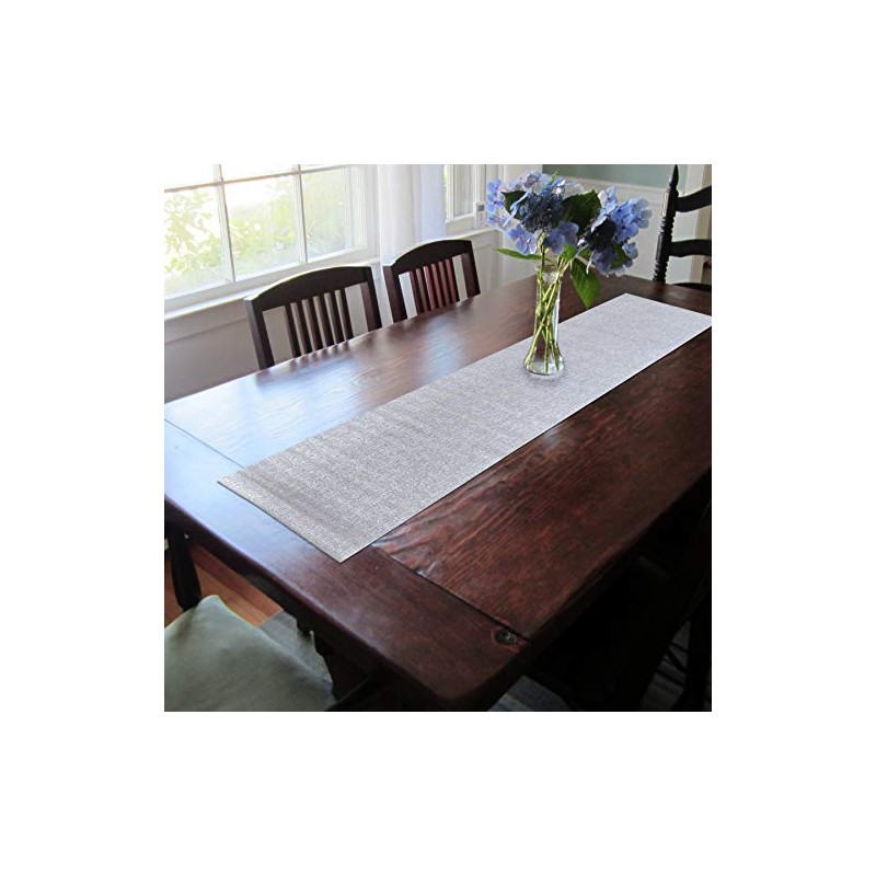 CAIT CHAPMAN HOME COLLECTION Holiday Woven Texture Design PVC Rectangular Heat Insulation Texteline Runner (Silver)