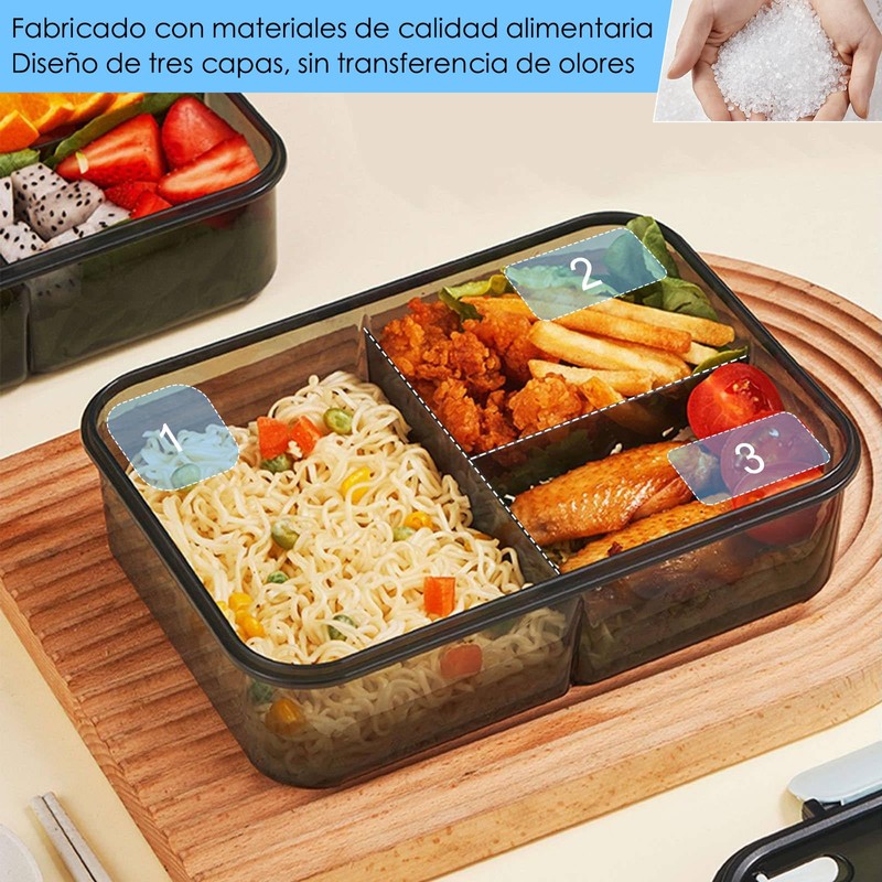 - 【Set de caja bento y bolsa de almuerzo】Agregue una nueva mejora a su experiencia gastronómica diaria. Esta versátil lonchera cuenta con 3 compartimentos independientes con una capacidad total de hasta 1500 ml, lo que se adapta perfectamente a tus necesidades de variedad y cantidad de alimentos. Ya sea una ensalada delicada, un plato principal contundente o fruta fresca, podrás guardarla de forma ordenada. Cada compartimento está especialmente diseñado para garantizar que los sabores de los diferentes alimentos no se mezclen.