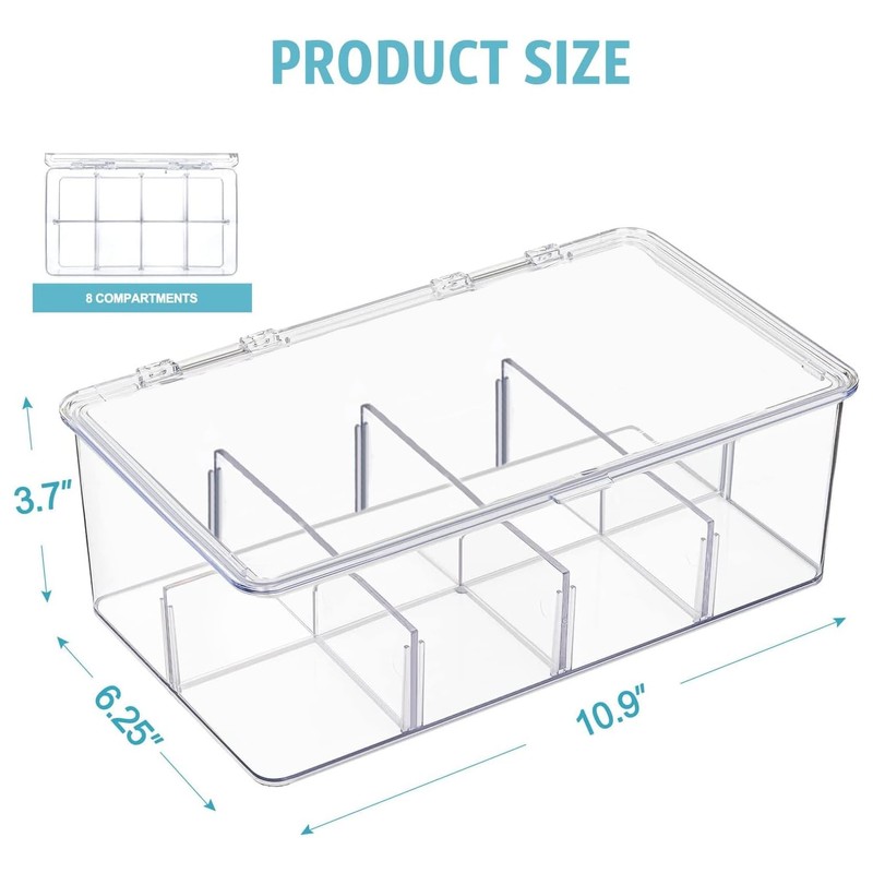 - Divisores Removibles: Hay 4 divisores removibles en cada recipiente organizador de té, por lo que puede personalizar el espacio de almacenamiento para usos específicos, facilita ver y agarrar lo que necesita.