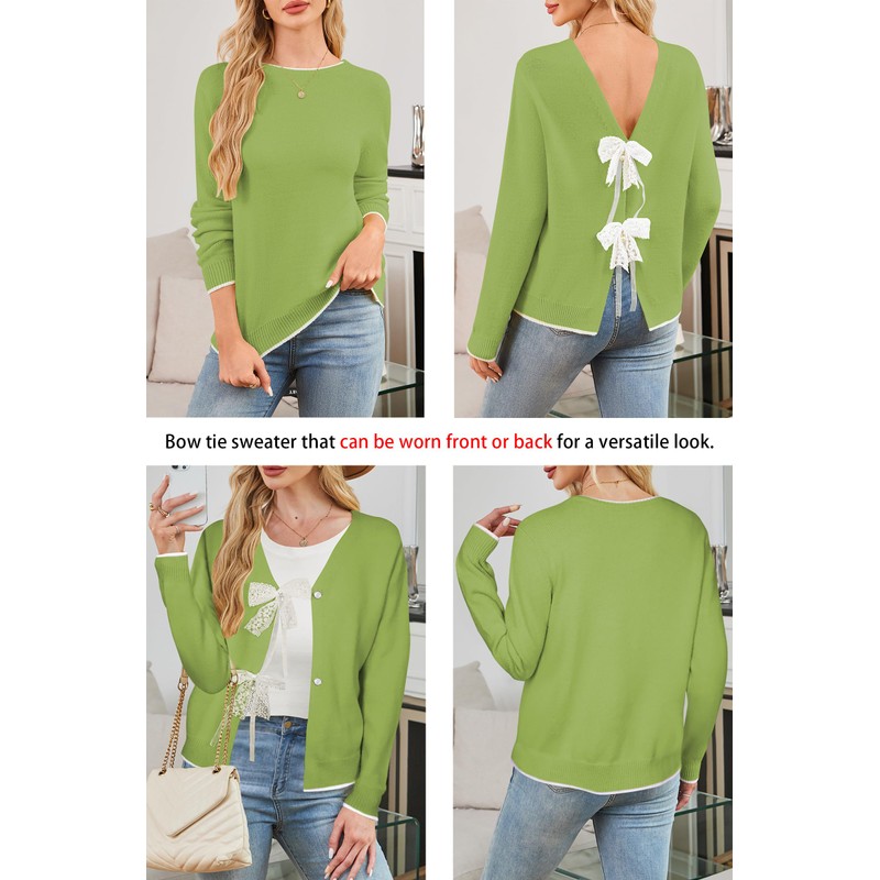 - Versatile Tie Front Tops for Women: Can be worn both front and back for a versatile look: style it as a back tie pullover sweaters or as an open front button down bow cardigan; ladies sweaters go great with jeans, skinny pants, skirts, dress, shorts, boots and so on