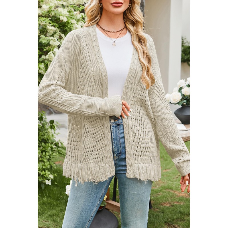 - Features: Womens cardigan sweaters featuring long sleeve drop shoulder, hollow out, open front cardigan for women with fringe hem, cable knit chunky cardigan sweaters for women, 2025 crochet cardigans for women, lightweight cardigans for women