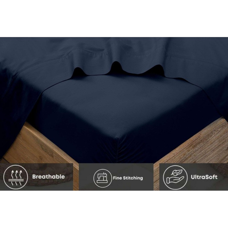 Cal-king Sheet Set - 4 Piece Bed Sheet Set - 400 Thread Count Bed-Sheet - Sheets For Cal-king Size Bed - 100% Long Staple Soft Cotton - Easy Fit Upto 12 Inches Deep Pocket - (Cal-king/Navy Blue Solid)