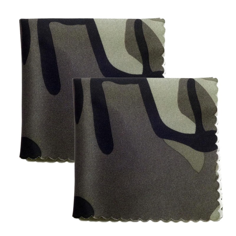 - Camouflage Microfiber Cleaning Cloth: This Calabria camo print eyeglass cleaning cloth provides two stylish color options in a camouflage pattern - Blue and White or Green - adding a touch of personalization to your cleaning routine. The dimensions of 6” x 6” makes this microfiber cleaner ideal for on-the-go use. The cloth is not just functional but also aesthetically pleasing, making it an ideal gift for anyone.