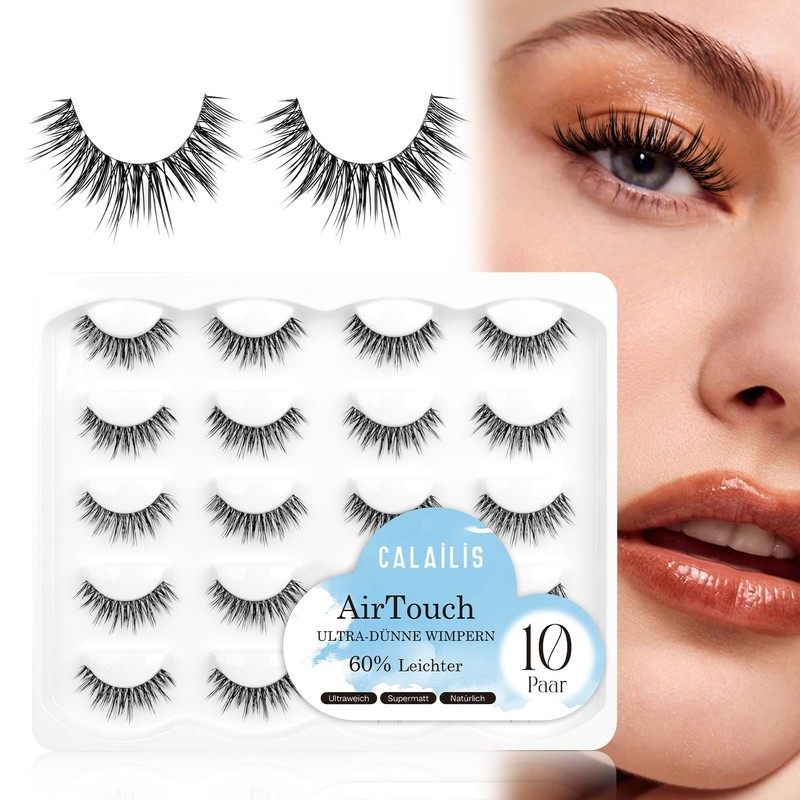 CALAILIS Artificial Eyelashes, Natural Look, Ultralight and Soft False Eyelashes, Clear Band, 10 Pairs Lashes, Cat Eye, Fake Eyelashes, Comfortable and Load Free to Wear All Day (C02)