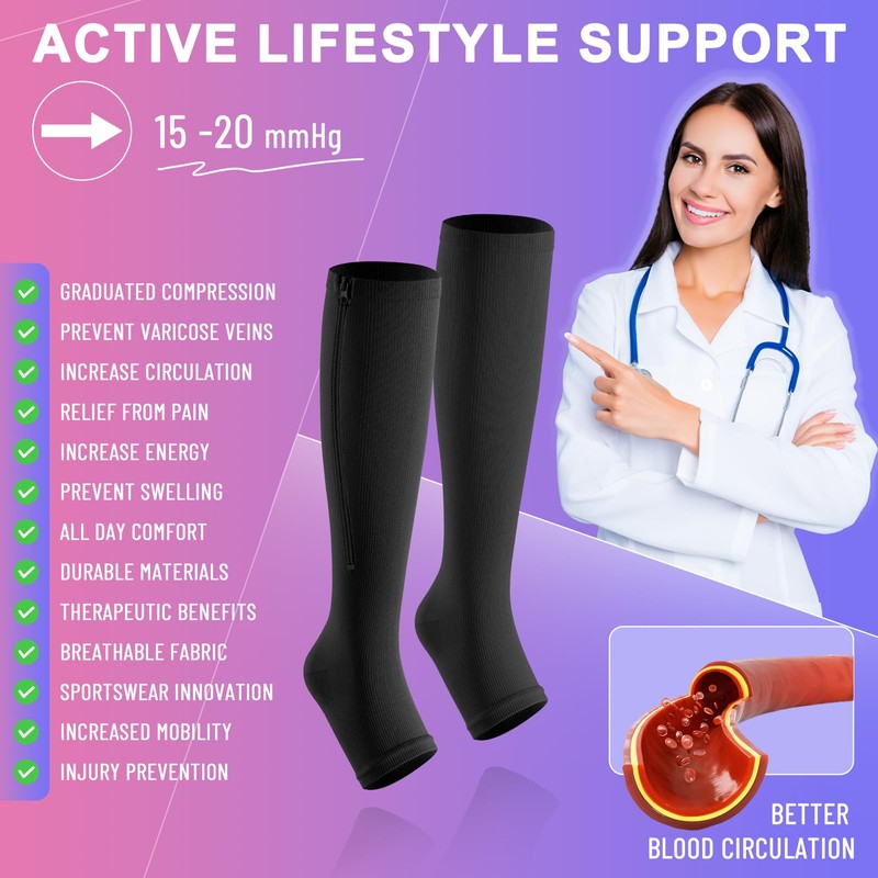 Prueba estos calcetines de compresión con cremallera y disfruta de la comodidad todo el día ahora.