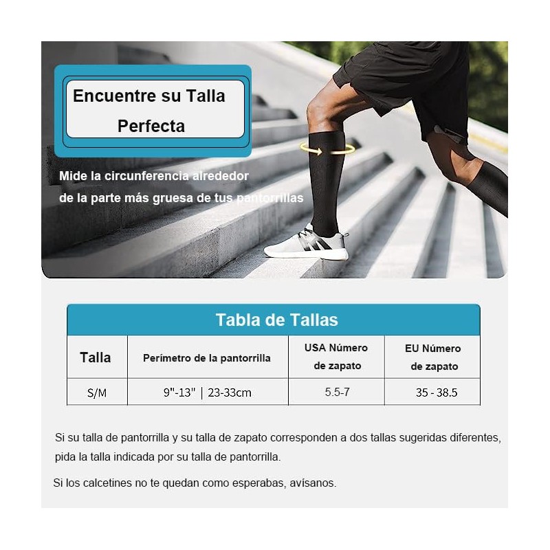 - Servicio postventa garantizado - Nuestro objetivo es ofrecer un buen servicio a nuestros clientes. Si tiene algún problema con nuestros calcetines de compresión, no dude en ponerse en contacto con nosotros. Queremos que cada cliente compre con confianza y use con comodidad.