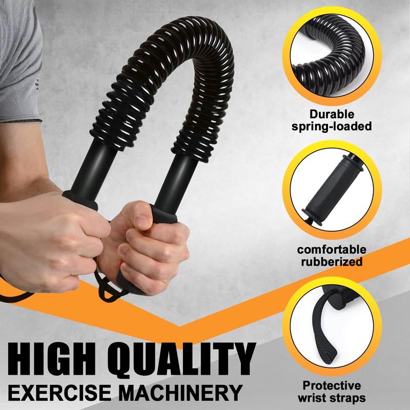 - High Quality Versatile Workout Bar: Durable arm exercise equipment, quality construction, and comfortable rubberized grips give you a sense of the quality of this arm workout equipment flex bar. Non-slip grips and wrist straps ensure your safety. When exercising, hold the wrist strap with both hands and make sure no one is around.