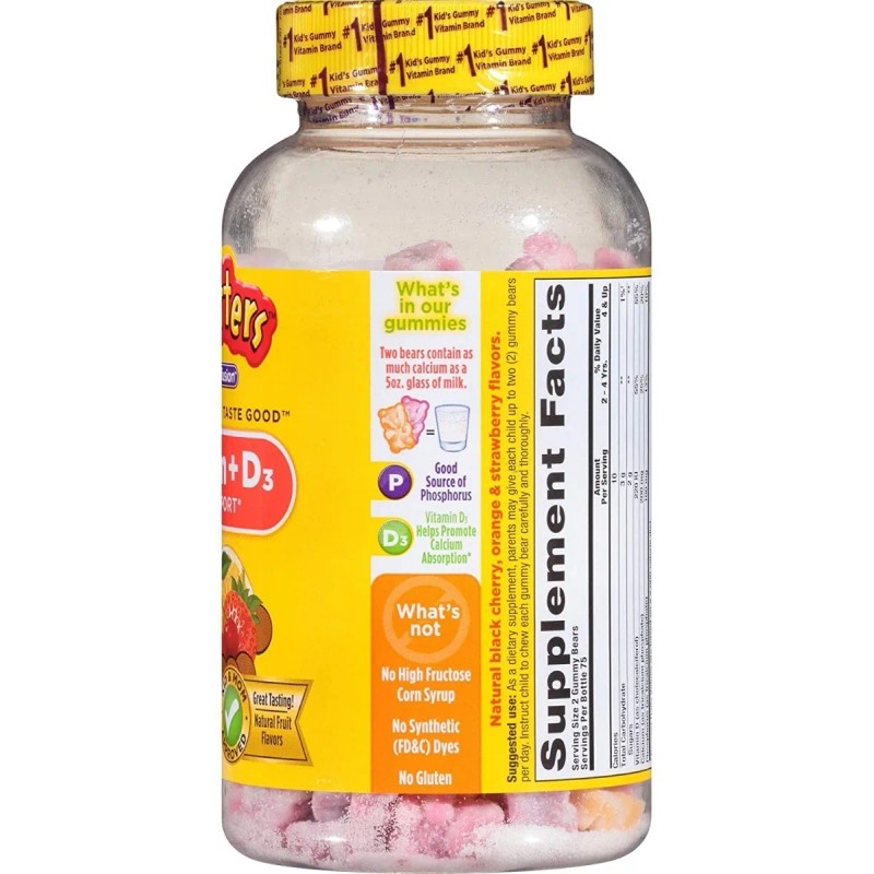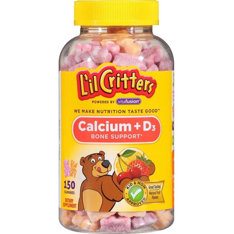 ¡Haz que el cuidado óseo sea delicioso con las gomitas L'il Critters Calcio + D3! 🐻💪 Este frasco incluye 150 gomitas masticables con un rico sabor frutal y una combinación poderosa de calcio y vitamina D3, esenciales para el desarrollo de huesos y dientes fuertes en los más pequeños y también en adultos. 🧒👵