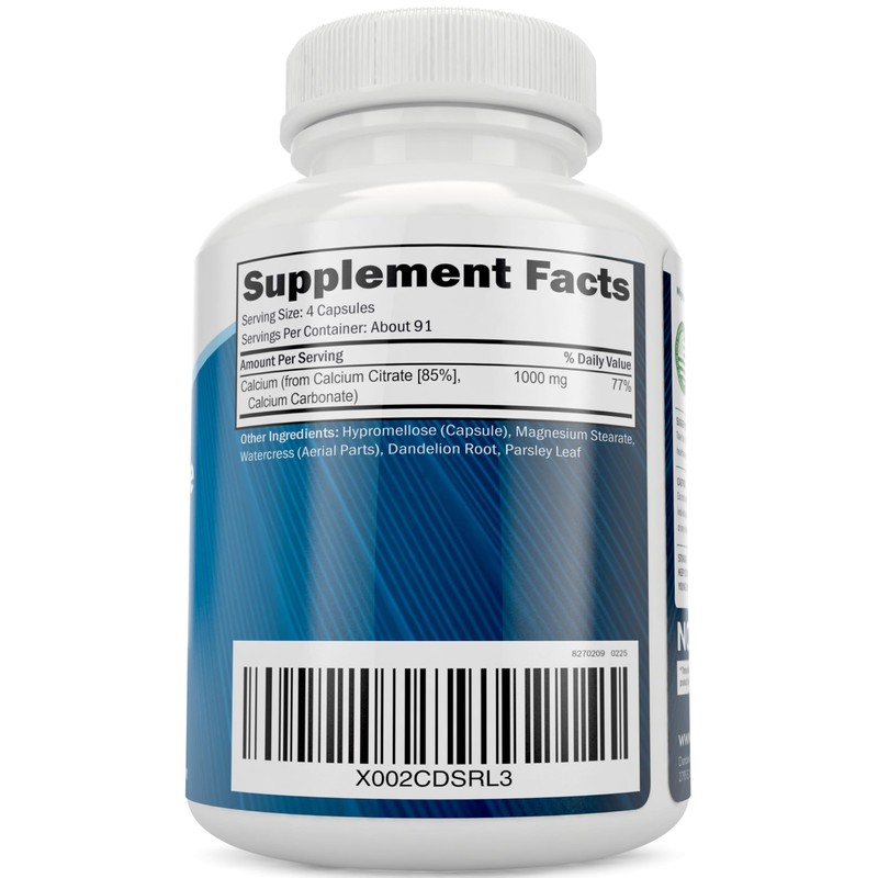 Calcium Citrate 1000mg - 365 Vegan Capsules not Tablets with Added Parsley, Dandelion and Watercress - Without Vitamin D - Made in The USA by Purely Holistic