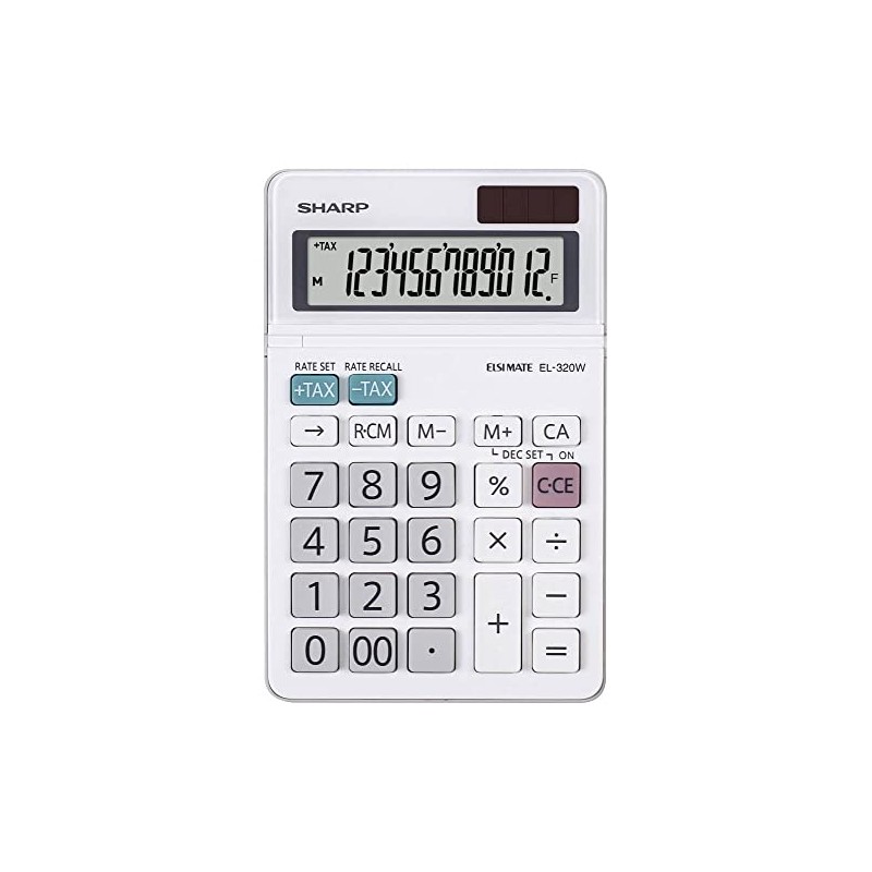 - New desktop calculator with unique attractive design, basic math and commercial functions, and large, tilt-adjustable 12-digit display