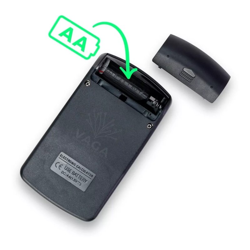 La calculadora digital básica portátil funciona con una sola pila AA, que no está incluida en el paquete. Hecha de plástico resistente, esta calculadora es duradera y está diseñada para durar.