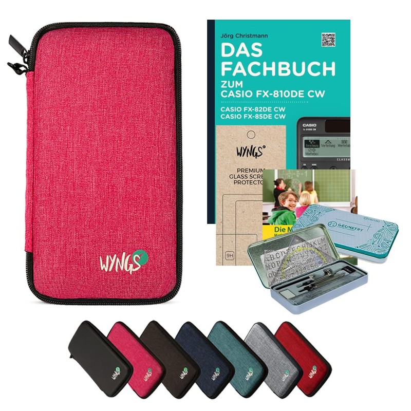 - Please note: specialist book and learning CD are in German. Calculator is not included. This is for illustration purposes only. Contents: protective case, screen protector, book book, learning CD, geometry set in German language.