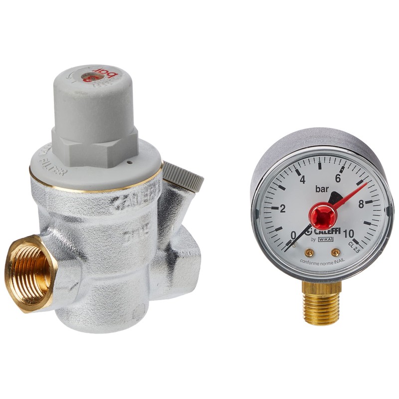 Caleffi 533241 1/2'' Tilted Reducer, Pressure Gauge, Chrome
