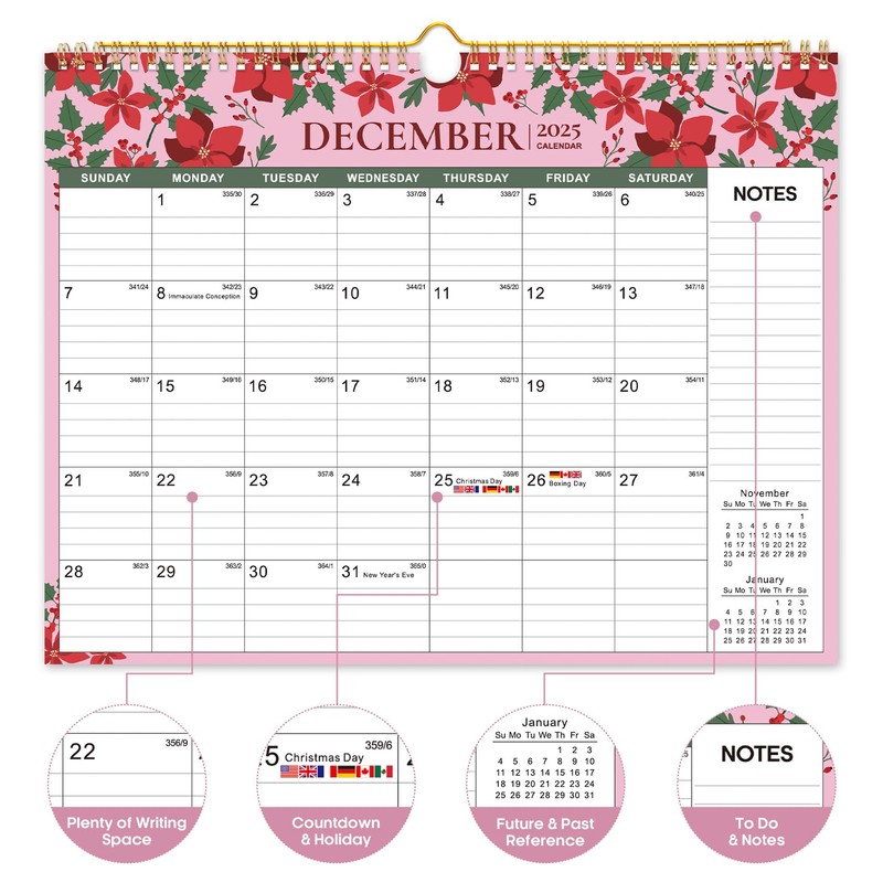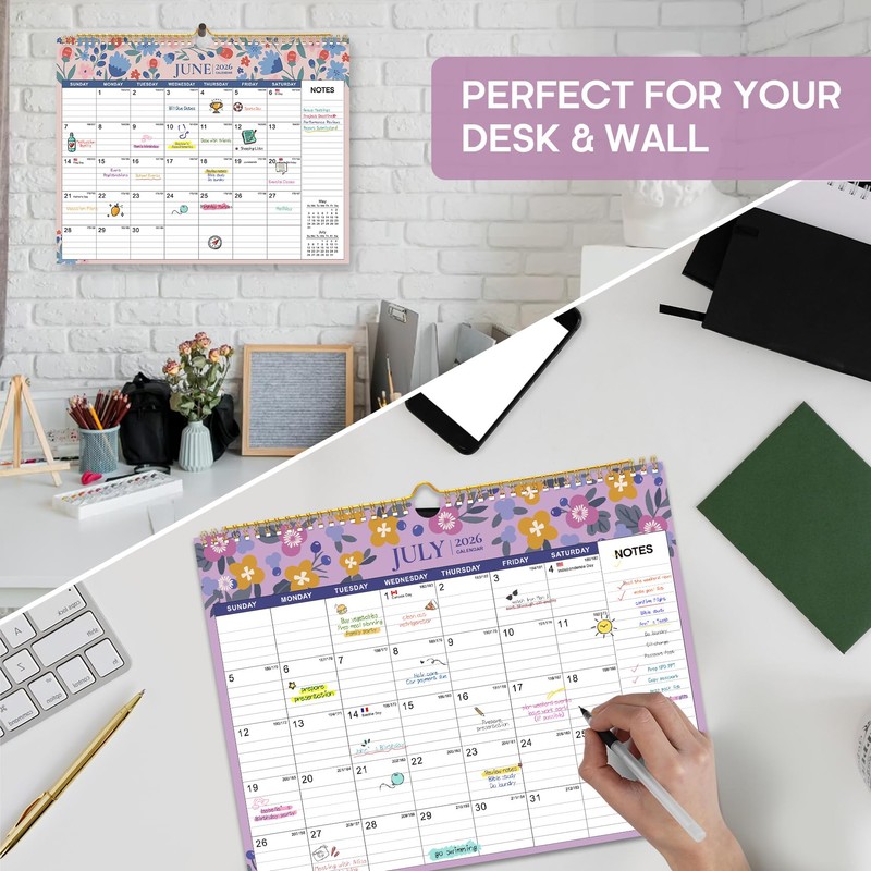 - Seamless Spiral Calendar Experience: Designed with Twin-Wire Binding, this spiral calendar offers a smooth, hassle-free way to turn pages, while its layout remains flat as a hanging calendar. Moving between months is effortless, allowing you to stay on top of your plans with ease and giving you a quick glance at your schedule whenever you need it.