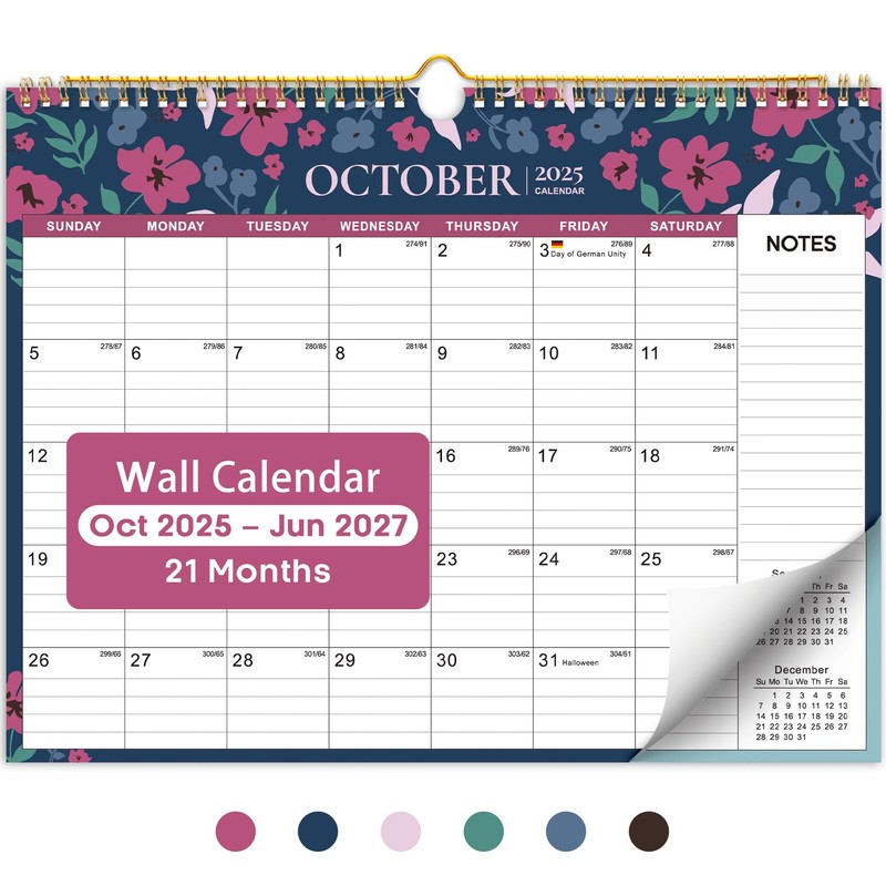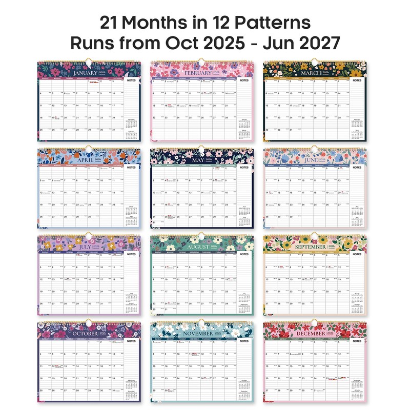 - Keep Your Schedule in Check: This 21 month calendar, running from October 2025 to June 2027, measures 14.7" x 11.5" and gives you the room to plan out your days with ease. The spacious boxes and notes section allow you to stay organized, while your 2025 wall calendar makes it easy to mark important dates and holidays.