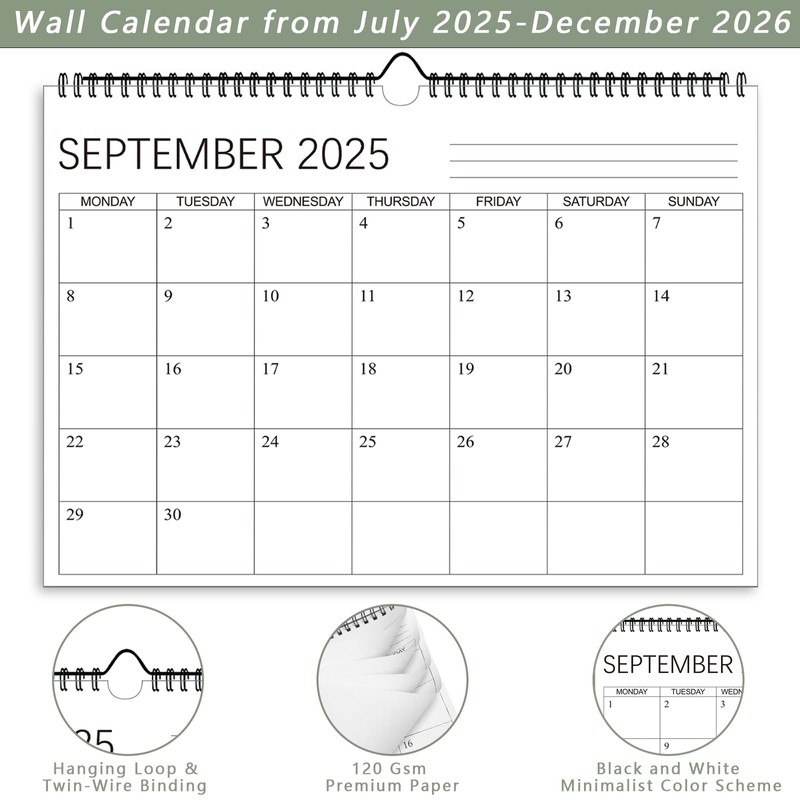 - Extended 18-Month Coverage: Calendar from July 2025 to December 2026 with perfect size of 30 x 21 cm. Our 2025 2026 wall calendar will elevate your space with its simplicity design,making our calendar a sophisticated choice for families, students, teachers, professionals.