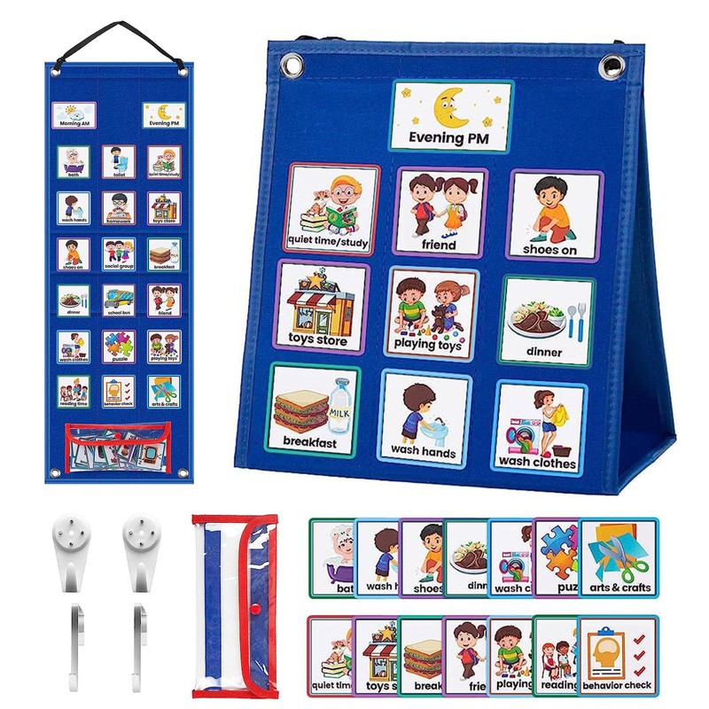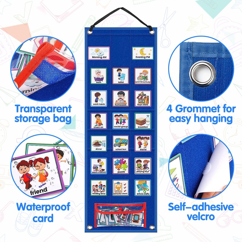Puede colgarlo en una pared o en cualquier otro lugar como planificador visual para su hijo, o colocarlo sobre una mesa como tablero de fieltro educativo. Anime a su hijo a completar las tareas y responsabilidades diarias de forma independiente y divertida, ¡sin constantes recordatorios verbales!
