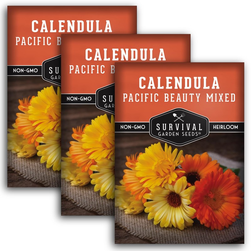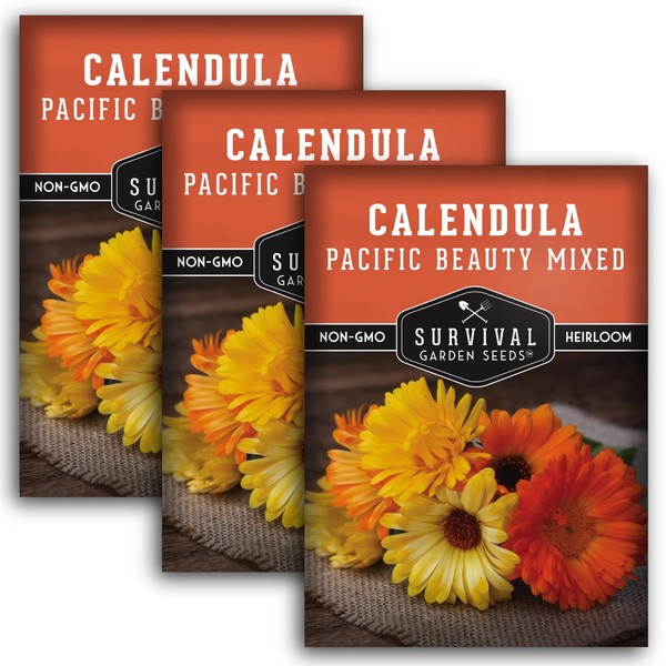 Calendula Pacific Beauty (Mixed) Seed for Planting - 3 Packets with Instructions to Plant and Grow Colorful Pot Marigold in Your Home Flower Garden - Non-GMO Heirloom Variety - Survival Garden Seeds