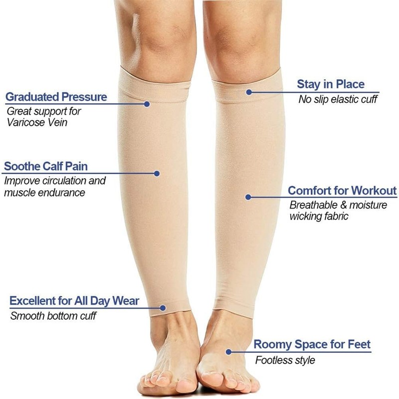 • AVAILABLE FOR EVERYONE WANTS FRESH LEGS Our calf compression socks are available for anyone who is standing up, sitting, airplanes or vehicles for extended periods of time, or who suffer from heavy, aching or restless legs. Especially shopping guides, doctors, nurses and pregnant women must wear these elastic calf compression stockings and compression sleeve leg warmers running stockings to help relieve symptoms such as spiders