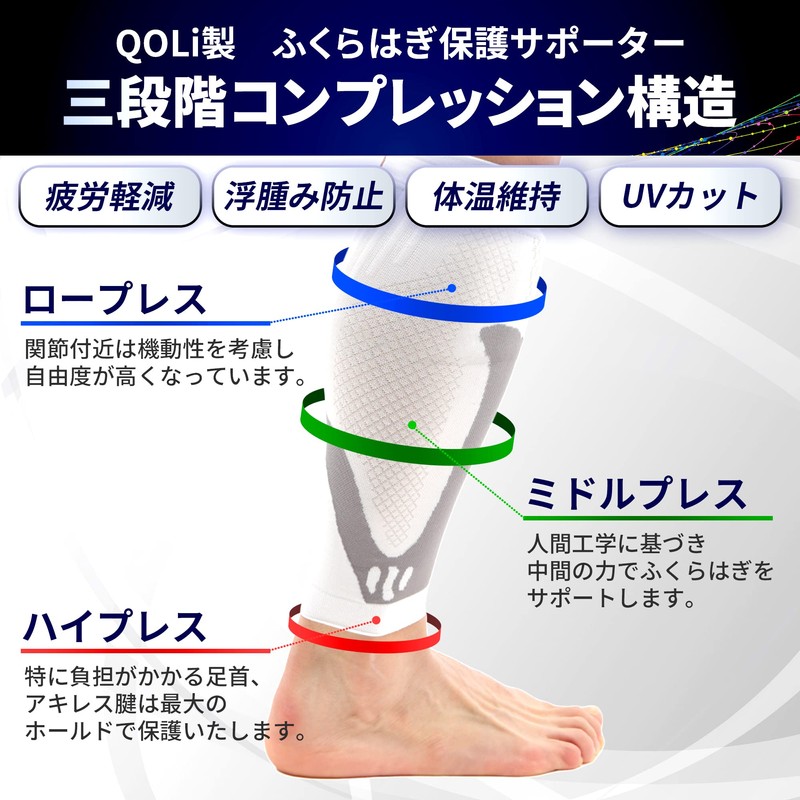 • (Thank You) QOLi Calf Supporter has won the #1 best-selling calf supporters in the Amazon calf and shin supporters. QOLi supporters have been heard by athletes and developed products based on various situations. Three-stage compression provides a more comfortable muscle protection