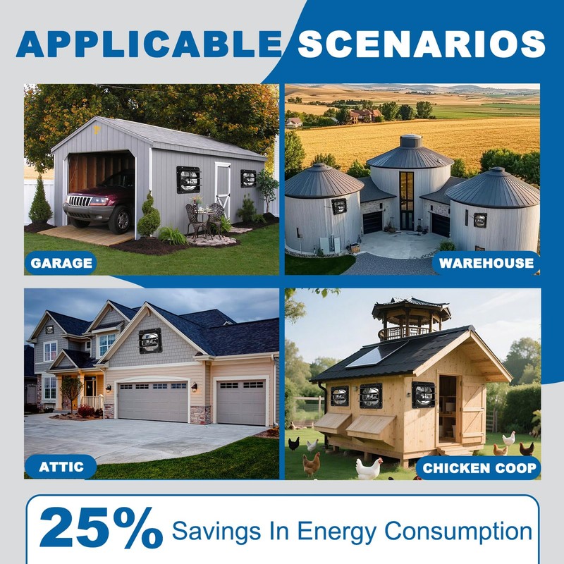 - Versatile Installation Options–Shutter Exhaust Fan for diverse settings like attics, garages, greenhouses, chicken coops, and workshops, providing efficient ventilation wherever needed