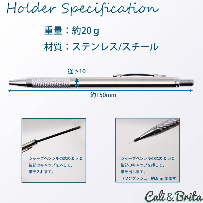 • The holder is retractable like a mechanical pencil, so you can adjust the brush stroke. In addition, it has a weight like a high class ballpoint pen (about 0.7 oz (20 g) for stable work. Furthermore, glue or paint adheres to the holder and may cause it to malfunction. If it gets adhered, please use a thinner or similar similar item and quickly wipe it with a wet wet cloth