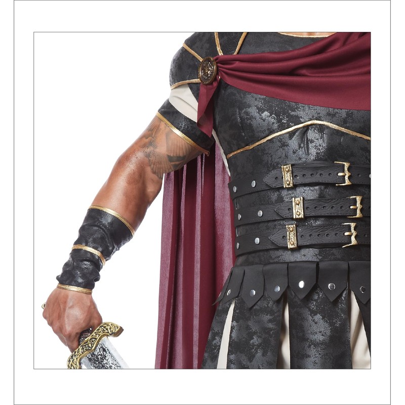 • Chest piece has belts attached to front, faux suede lappets hanging from waist, cape sewn to shoulders